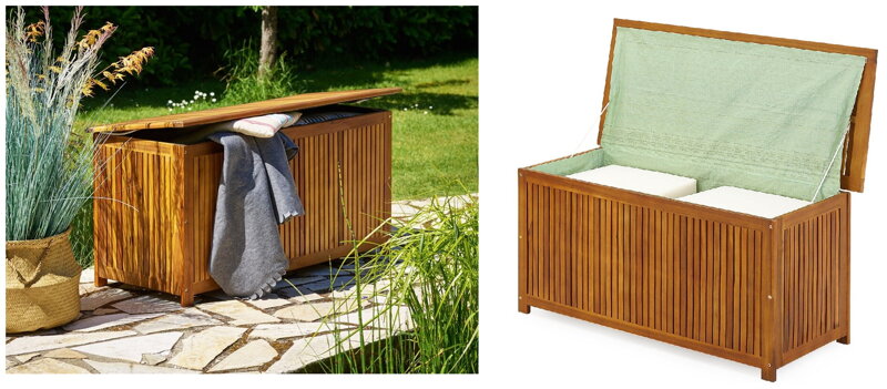 → Naš savjet: Nemojte se bojati biti kreativni i koristiti kutiju za pohranu za točno ono što vam je potrebno! Osim klasičnih jastuka za sjedenje, jastuka ili vrtnog alata (posude za cvijeće, gnojiva, alati, kante za zalijevanje, gumene čizme i sl.), može se koristiti i za odlaganje sljedećih predmeta: